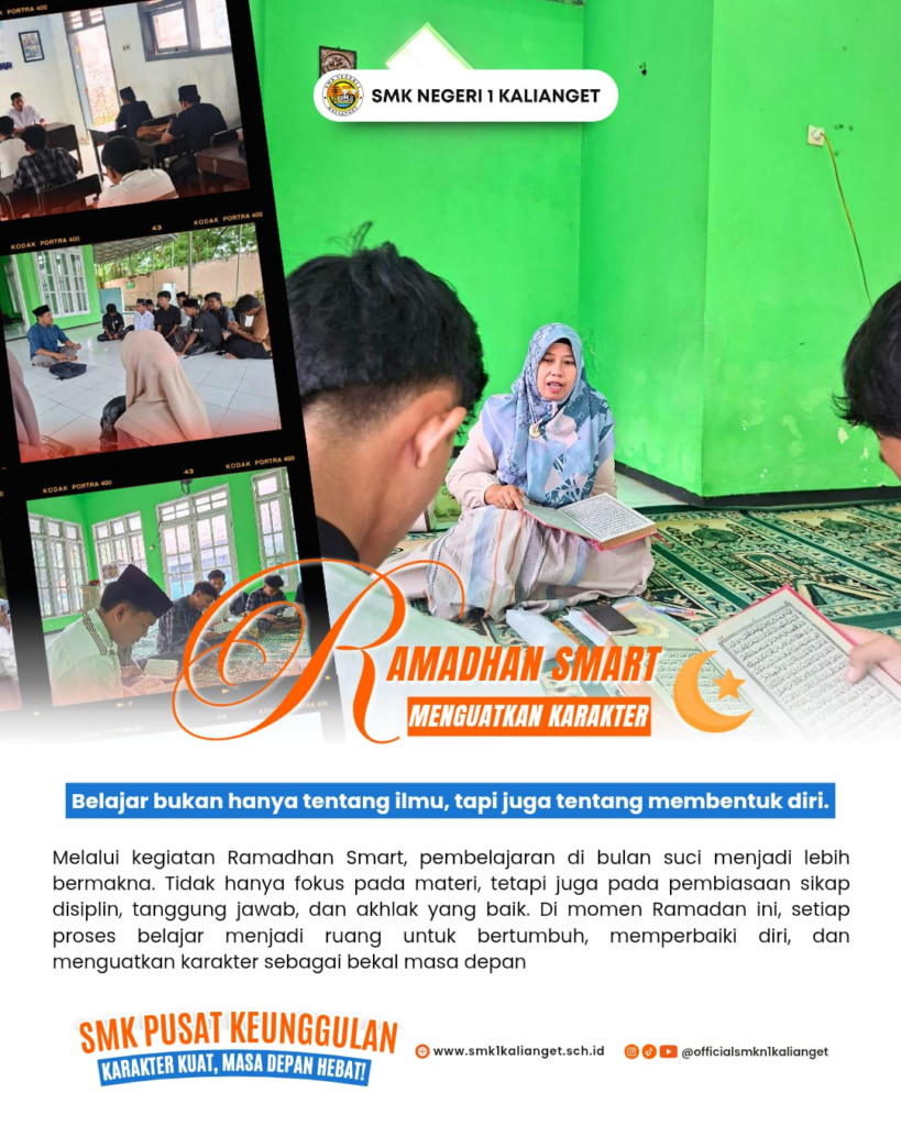 Kepala SMK Negeri 1 Kalianget menyampaikan bahwa Pondok Ramadhan merupakan program rutin sekolah yang menjadi bagian dari komitmen dalam membentuk lulusan yang berkarakter kuat. “Belajar bukan hanya tentang ilmu, tetapi juga tentang membentuk diri. Melalui Ramadhan Smart, kami berharap siswa mampu menginternalisasi nilai-nilai positif dalam kehidupan sehari-hari,” ujarnya.